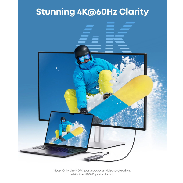 استمتع بجودة صورة مذهلة وأداء عرض سلس من خلال منفذ HDMI الذي يدعم دقة 4K بمعدل تحديث 60 هرتز — مثالي للعروض التقديمية عالية الدقة، أو مشاهدة الفيديوهات، أو توصيل شاشة إضافية.