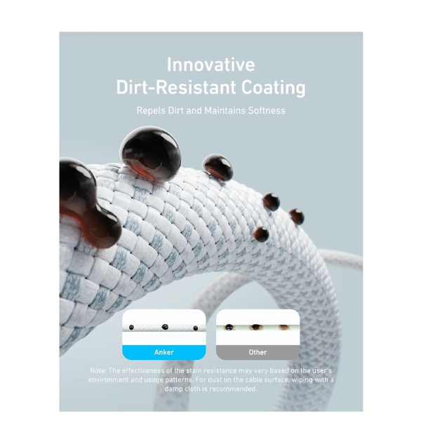 Coated with a nano dirt-resistant layer that prevents dust buildup and keeps the cable looking clean and fresh.