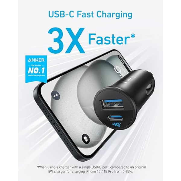 Anker 30W Dual-Port Car Charger USB-C & USB-A – Fast Charging Black