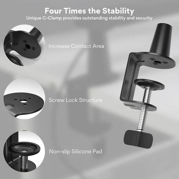 The sturdy C-clamp mount fits most desks and provides a secure hold without damaging surfaces. Setup takes just minutes—no tools, no hassle.