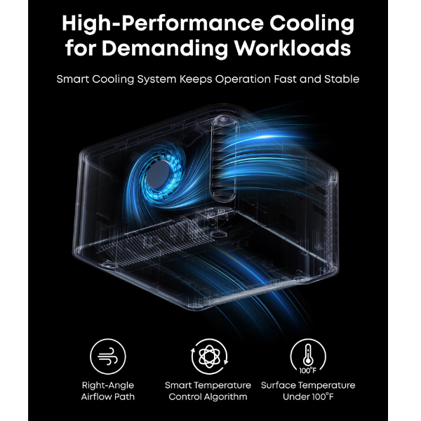 Integrated high-performance cooling fan ensures efficient airflow and consistent performance even under heavy workloads. -